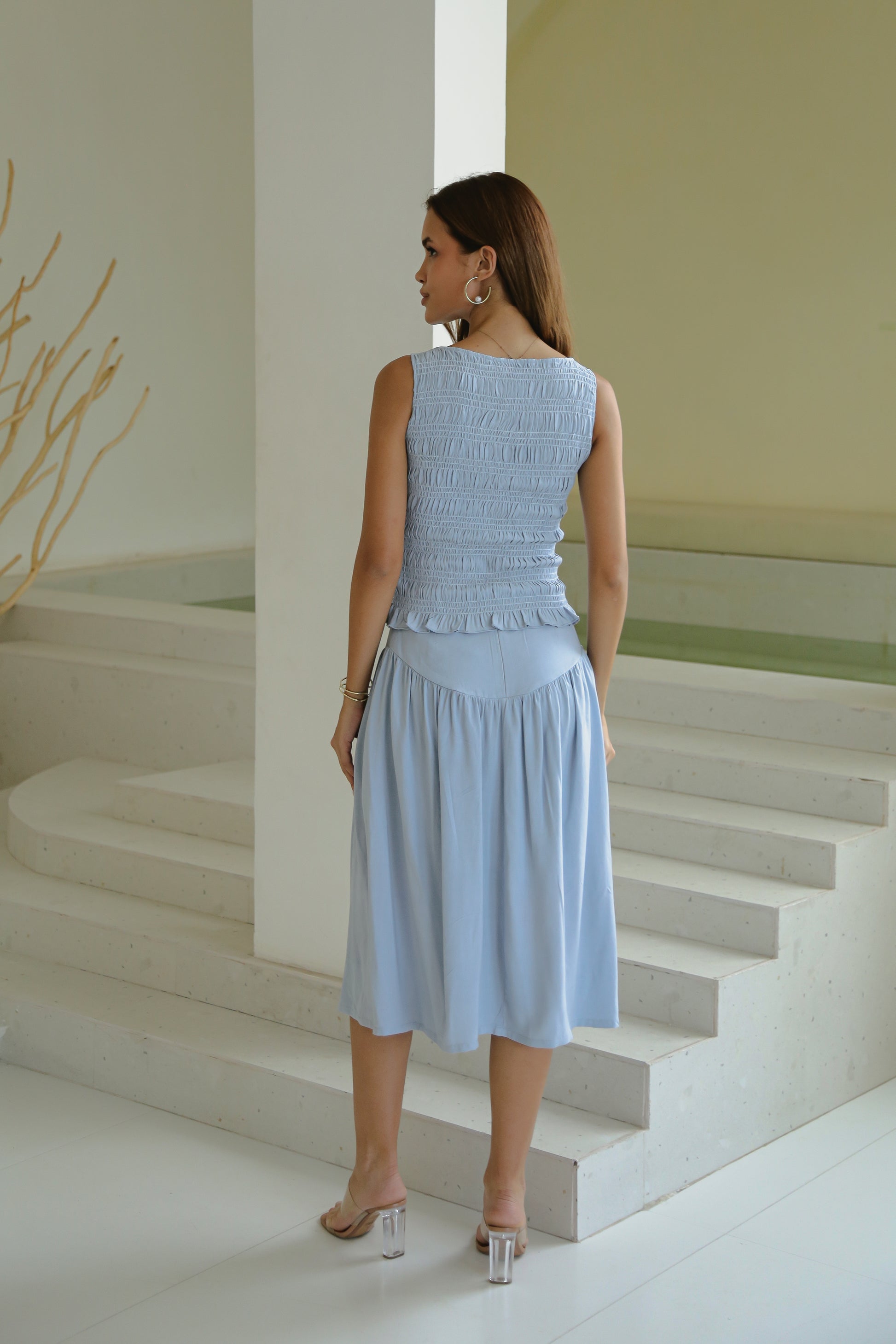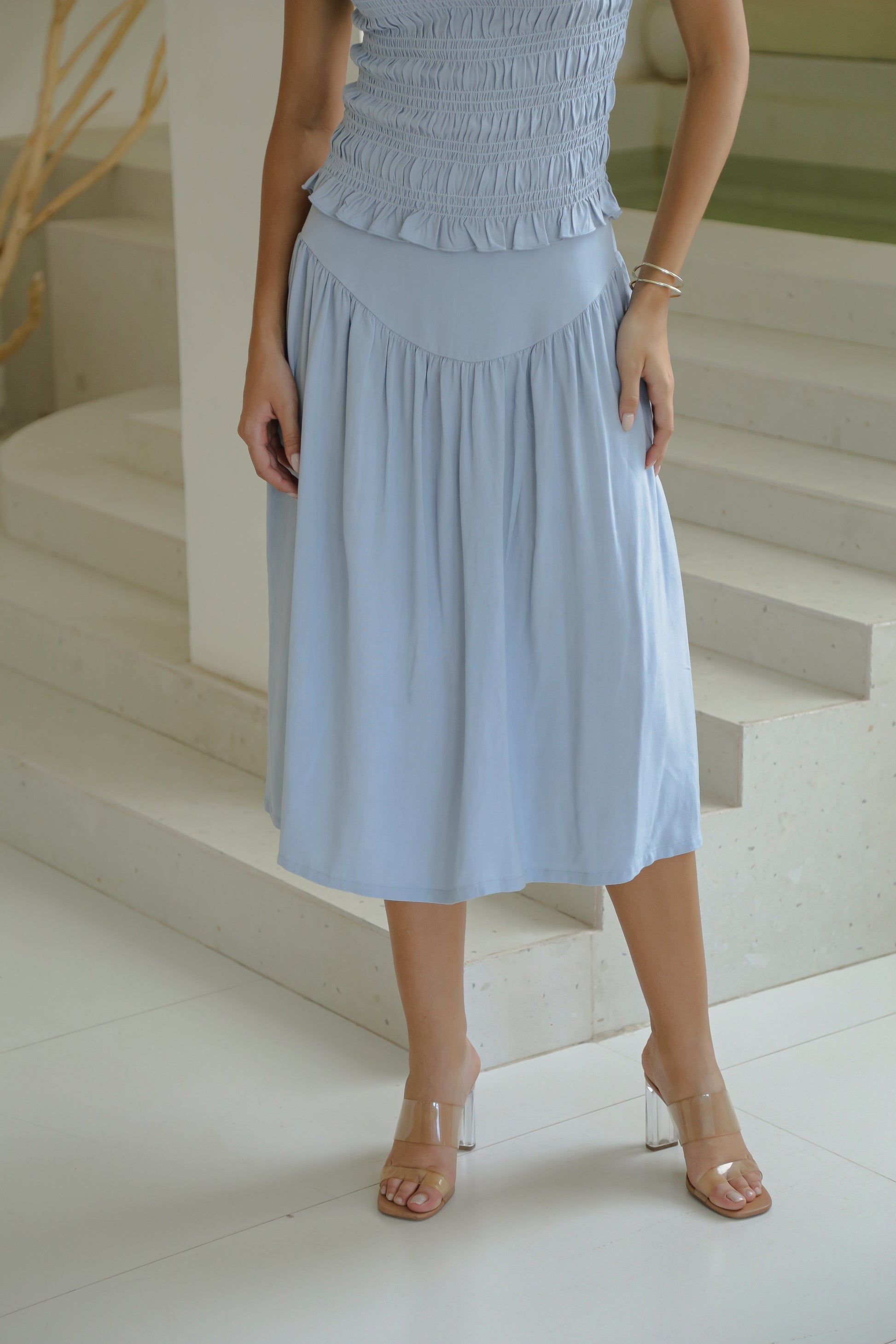 SKIRT - Flowy, midi-length skirt in a blue hue with a curved yoke and gentle gathers for effortless movement.